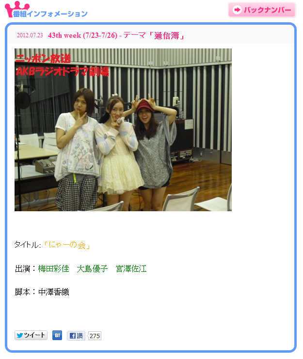 07/23(月) 23:50-24:00 ニッポン放送「AKBラジオドラマ劇場」43th week - テーマ「通信簿」