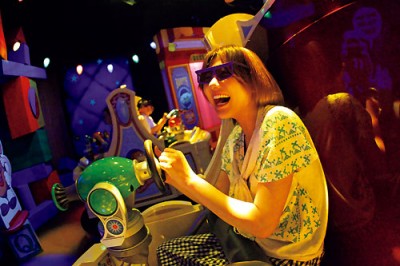 ちなみに「トイ・ストーリー・マニア!」は、シューター付きのトラムに乗り込んで、次々と飛び出してくる的を狙い撃ち、合計得点を競い合うという熱中度満点のアトラクション。最初に登場する練習用ステージでコツを掴んだ宮澤さんは、ゲームが始まるや怒涛の連射を披露! お皿を投げたり、飛んでいる風船を割ったり、輪投げをするステージなどをサクサクとこなし、初挑戦ながら14万点超えの好成績を記録した。