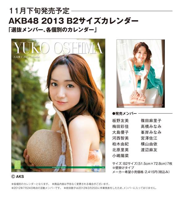 AKB48 2013年版 卓上/壁掛カレンダー予約受付中