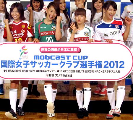 同選手権は、今年から新しくスタートする女子サッカークラブの国際大会。豪州、欧州の強豪2チームを日本に招聘(しょうへい)し、国内の「INAC神戸レオネッサ」「日テ­レ・ベレーザ」と計4チームでトーナメント戦を行う。22、25日の開催で、両日、BSフジが全試合を独占放送する。なお17日午後7時から、特別番組「モブキャストカッ­プ 国際女子サッカークラブ選手権2012 直前特番~開幕まであと1週間SP!」(仮)が放送される。